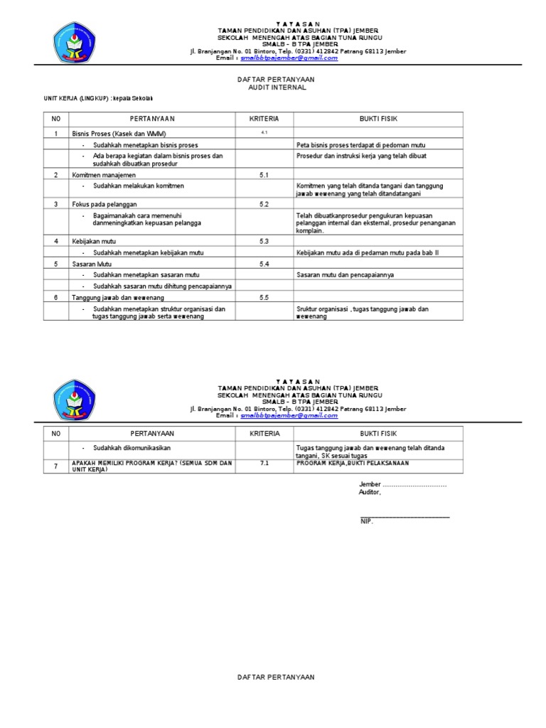 untuk "Pertanyaan Tentang Internal Audit : 2 Daftar Bantu Pertanyaan Audit Internal - We did not find results for:"